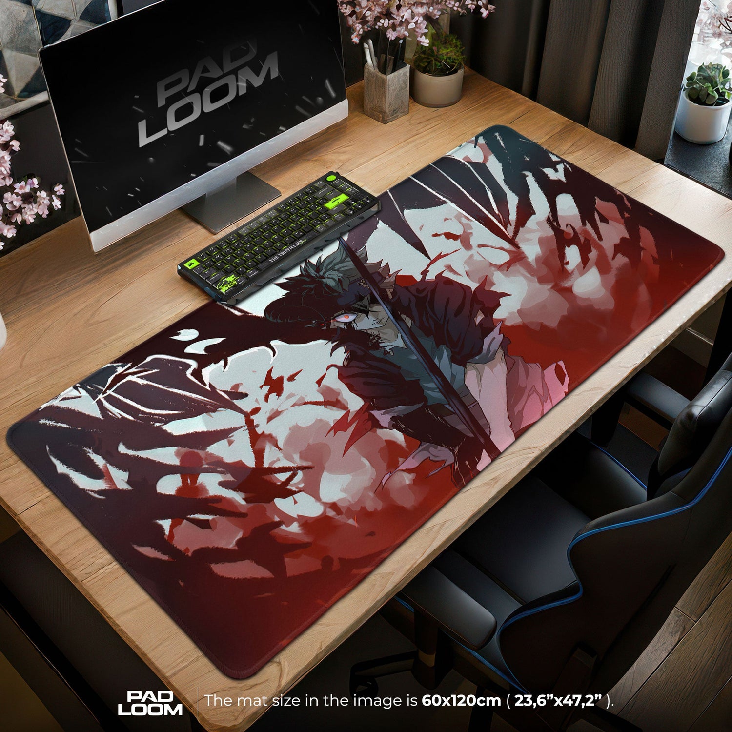 Ideal für Anime-Fans, Spieler und Kreative, hebt dieses Mauspad deinen Arbeitsplatz mit einer Aura dunkler Kraft und Widerstandsfähigkeit hervor. Seine düstere Farbpalette fügt sich mühelos in minimalistische Einrichtungen oder dramatische Spielumgebungen ein und dient sowohl als visuelles Zentrum als auch als Werkzeug für Leistung.