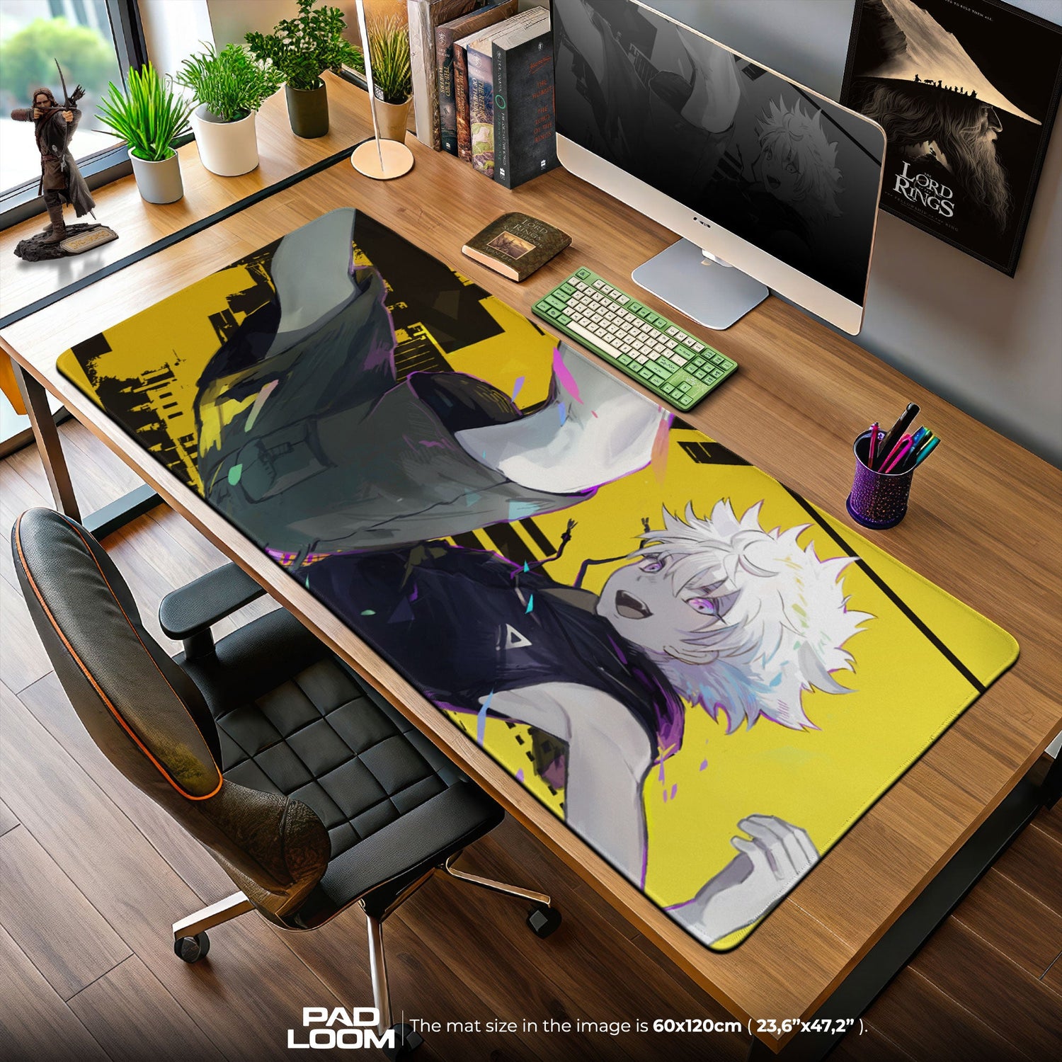 Verleihe deinem Arbeitsplatz Energie und kühnen Stil mit dem Killua-Mauspad – Neon-Rausch-Ausgabe. Dieses auffällige Design strotzt vor Kontrasten – lebendige Gelbtöne, tiefes Schwarz und scharfe Violetttöne vereinen sich in einer dynamischen Actionaufnahme, die Selbstvertrauen und Freiheit ausstrahlt. Killuas elektrisches Grinsen und die rasante Bewegung erzeugen ein Gefühl unaufhaltsamer Dynamik, perfekt für Schreibtische, die von Kreativität, Konzentration und Ausdruckskraft leben.