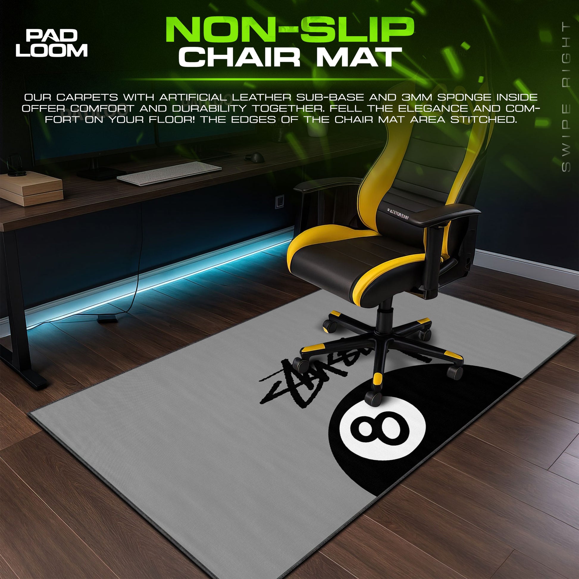 The anti-slip rubber backing keeps the pad steady, while stitched edges add strength and clean styling.