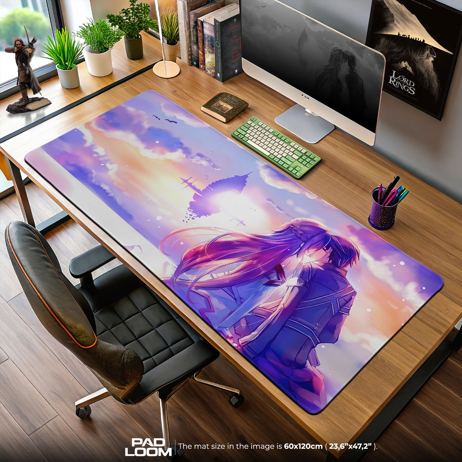 Für Fans von Sword Art Online steht dieses Design für Verbundenheit, Mut und gemeinsame Reisen. Jedes Mal, wenn Sie sich an Ihren Schreibtisch setzen, erinnert Sie das Bild von Kirito und Asuna, die zum Horizont blicken, an die Abenteuer, die sie gemeinsam erlebt haben. Es ist mehr als ein Accessoire – es spiegelt die Verbundenheit und Stärke wider, die sie zu Ikonen gemacht hat, und bringt diese Emotionen in Ihren Alltag.