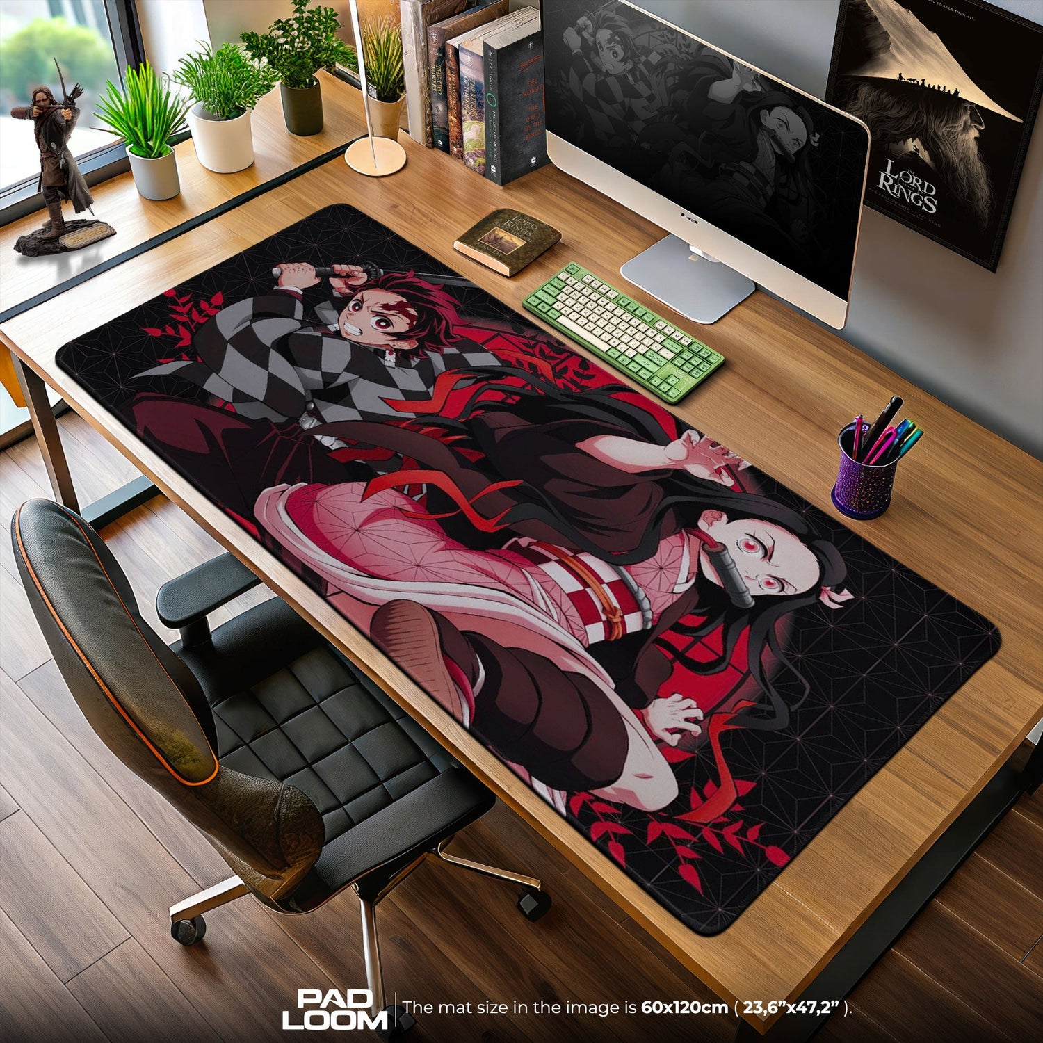 Ideal für alle, die sich von filmischen Anime-Bildern oder japanisch inspiriertem Design angezogen fühlen, verleiht dieses Tanjiro- und Nezuko-Mauspad deinem Schreibtisch Stil und Seele. Es ist auch ein bedeutungsvolles Geschenk für Fans, die Kraft in Familie, Ausdauer und dem stillen Feuer finden, das sie vorantreibt.