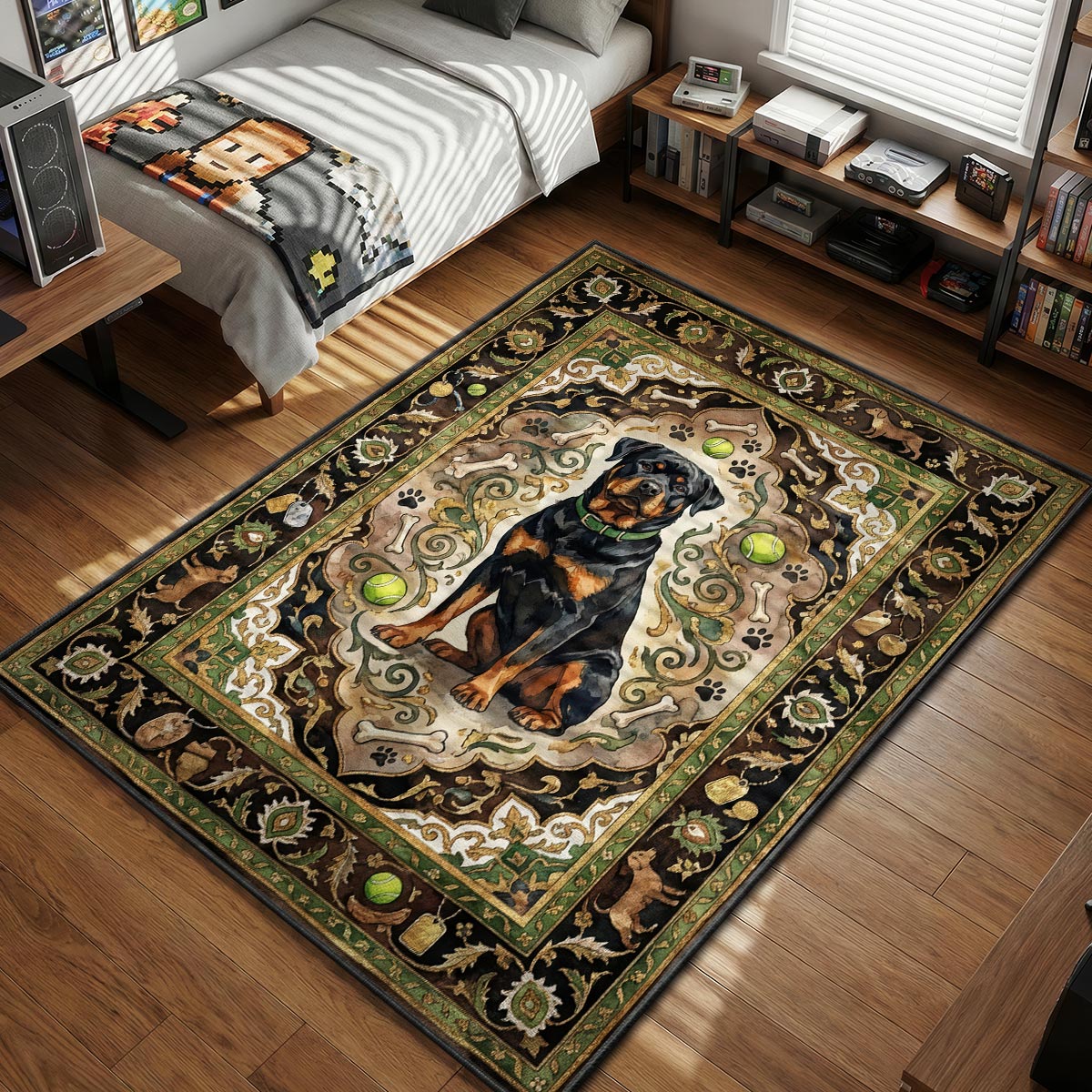 Q: How do I clean it if I spill something? A: Much like taking care of a digital dog, it's easy. The rug is designed to be low-maintenance and washable. Regular vacuuming and spot cleaning with mild soap will keep it looking fresh for the next mission.