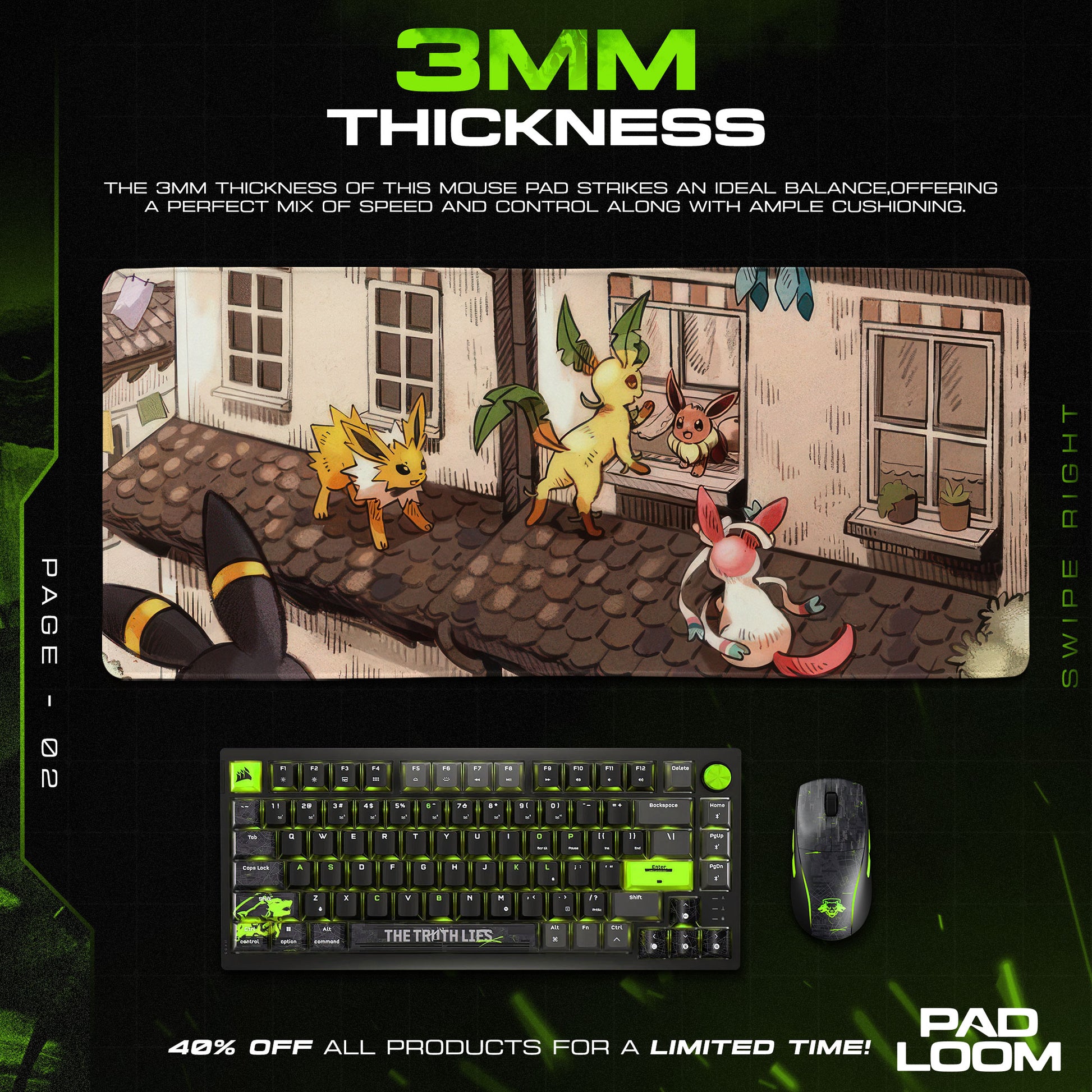 Ideal for fans of the Eeveelution line or anyone drawn to quiet, playful storytelling, this desk mat isn’t loud or flashy—it’s comforting. It invites you to slow down, to notice details, and to enjoy the feeling of coming home, even if it’s just for a moment between battles or browser tabs.