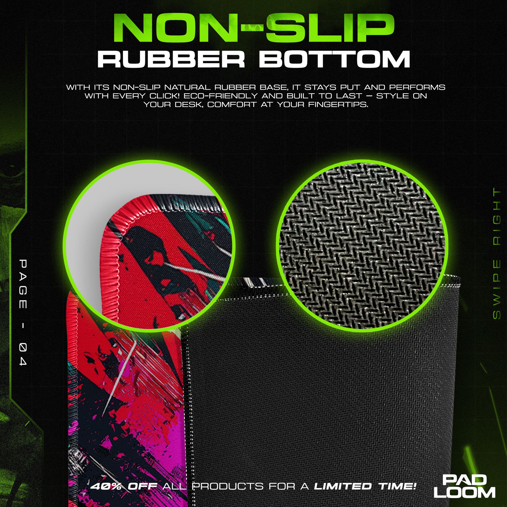 Built to endure and perform. This mouse pad is engineered with refined details to deliver long-lasting quality and a visually striking look.