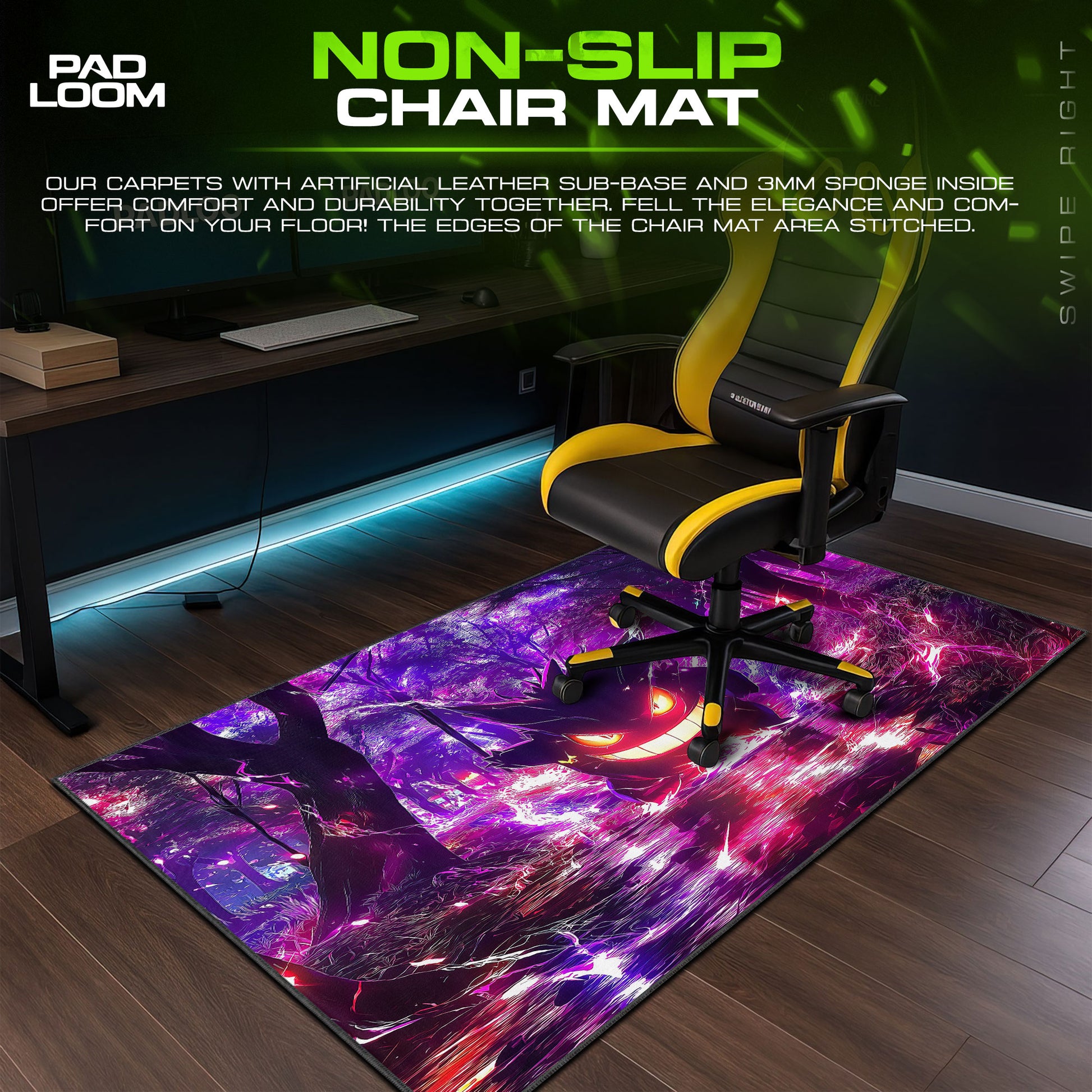 There’s something thrilling about this Gengar desk mat — a playful danger that creeps just beneath the surface. Set in a glowing forest alive with neon energy and shadows that move like whispers, Gengar emerges from the mist with that signature grin and glowing red eyes. The entire scene pulses with ghostly electricity, transforming your desk into a pocket of the unknown where mischief and mystery thrive.