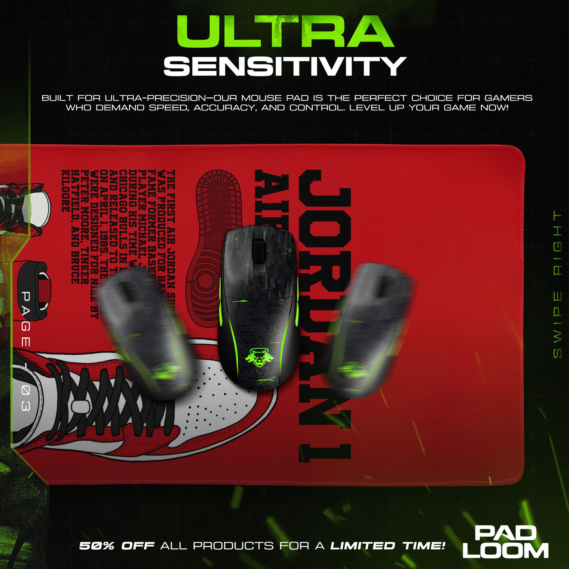 Part of the Padloom mouse pad collection, the Jordan 1 Air Mouse Pad is more than a workspace essential — it’s a tribute to legacy, movement, and the art of standing out.