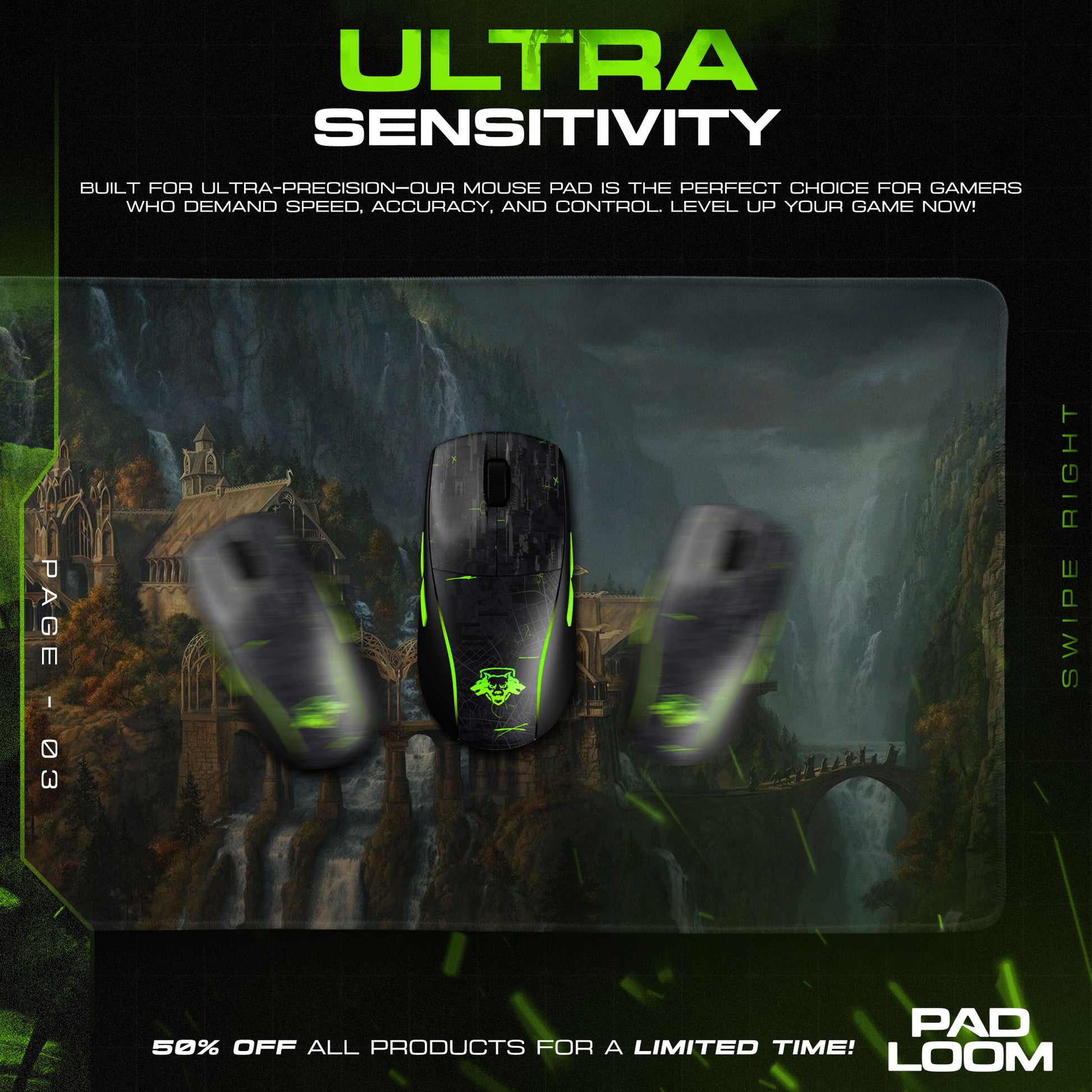 Step into Middle-earth every time you sit at your desk with this Lord of the Rings mouse pad, a breathtaking depiction of an elven sanctuary nestled among misty cliffs and cascading waterfalls. The intricate architecture, glowing amber windows, and emerald forest hues evoke a sense of timeless beauty and calm — a refuge for the weary traveler and a sanctuary for creative minds. The scene feels alive, bathed in soft light that whispers of wisdom, magic, and quiet strength.