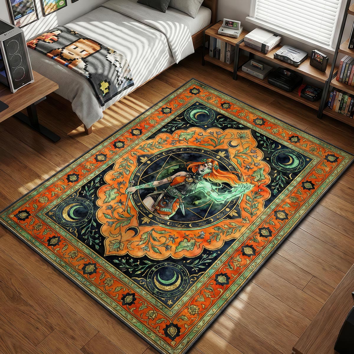 Prepare to slay Time itself. This design captures Melinoë, the Princess of the Underworld, in all her arcane glory. Featuring her signature spectral arm, orange hair, and wielded weapons, this rug is a tribute to the highly anticipated sequel. Whether you are training with Hecate or battling your way toward Chronos, this floor mat serves as the ultimate summoning circle for your gaming room. It is the centerpiece of our collection of Hades II rugs, perfect for fans ready to delve back into the depths.