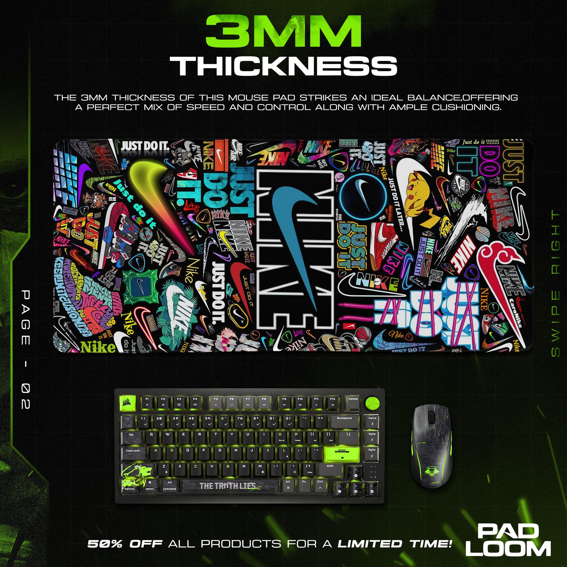 Part of the Padloom mouse pad collection, the Nike Neon Collage Mouse Pad transforms your desk into an arena of creativity and culture — a place where legacy meets rhythm, and color never sleeps.