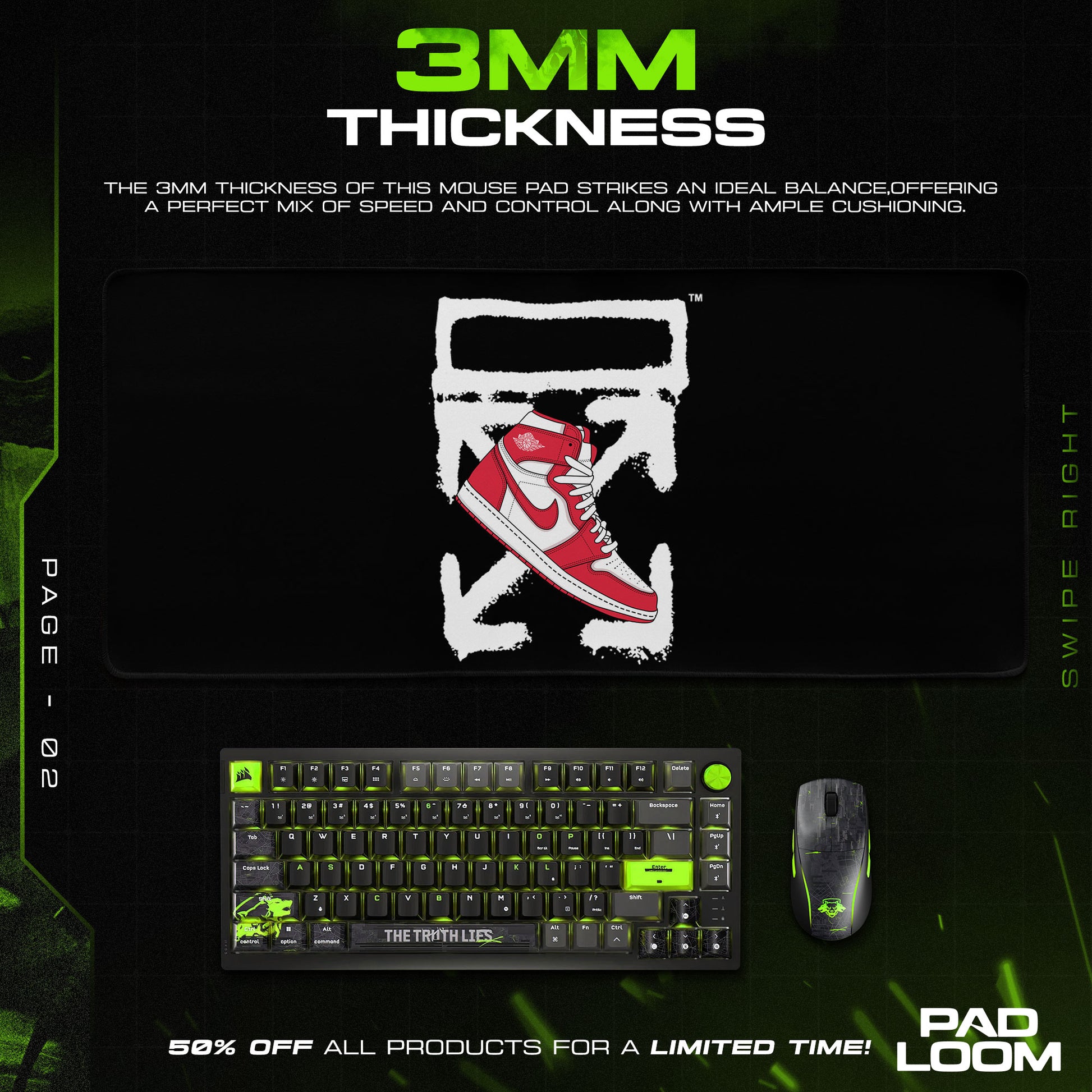 Designed for gamers, sneakerheads, and creatives who love clean design, this desk mat brings a sense of urban sophistication to your workspace. It also makes an ideal gift for fans of modern sneaker art, minimalist setups, and Off White-inspired aesthetics — a fusion of performance and culture in one sleek surface.