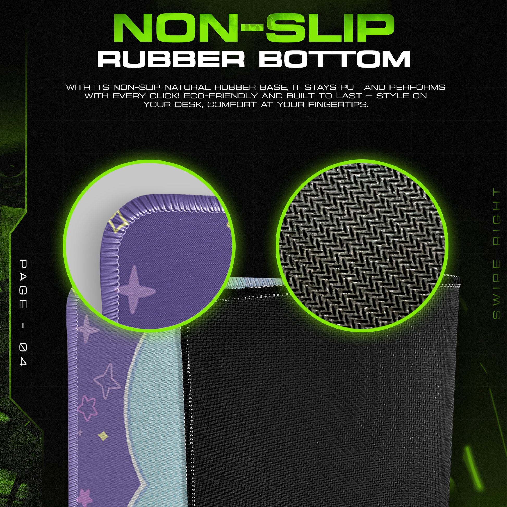 But behind the charm lies performance. The ultra-smooth fabric surface ensures fluid, accurate mouse control for gaming, digital art, or everyday browsing. Whether you're deep in a battle or just unwinding with cozy content, the responsive texture keeps your movements precise and consistent. A 3mm padded base provides subtle wrist support, while the non-slip rubber underside ensures your mat stays in place—even when the ghosts get rowdy.