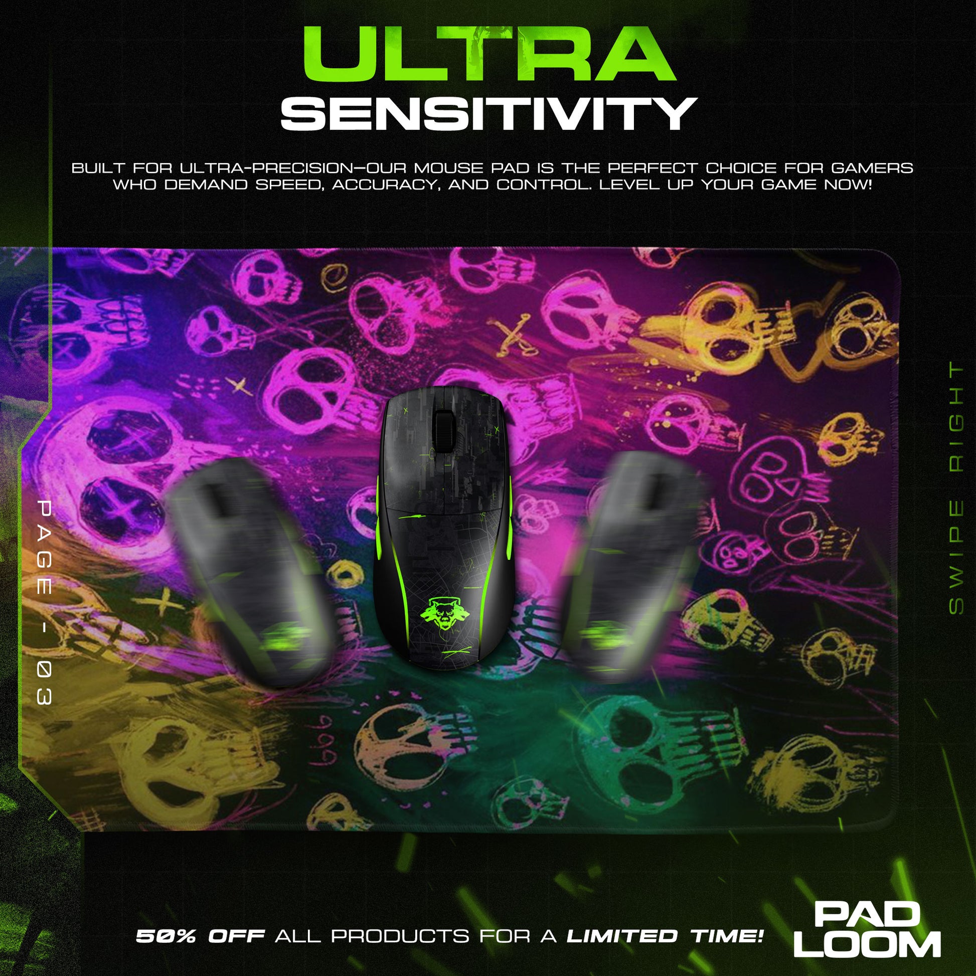 Part of the Padloom mouse pad collection, the Psychedelic Skulls design is a celebration of chaos and creativity — where color meets control and art meets adrenaline.
