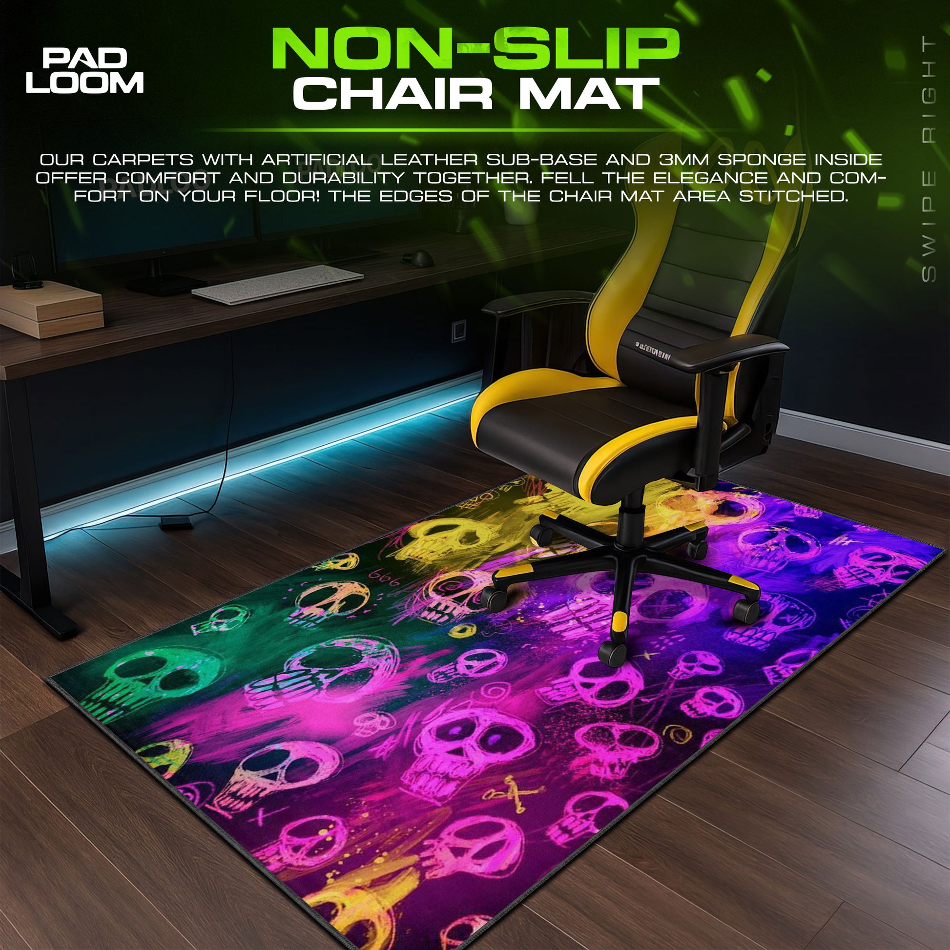 Maintenance is effortless: wipe clean with a damp cloth to preserve its glow and texture. The mat’s durable weave resists wear and fading, ensuring that the colors stay bold and your workspace stays sharp.