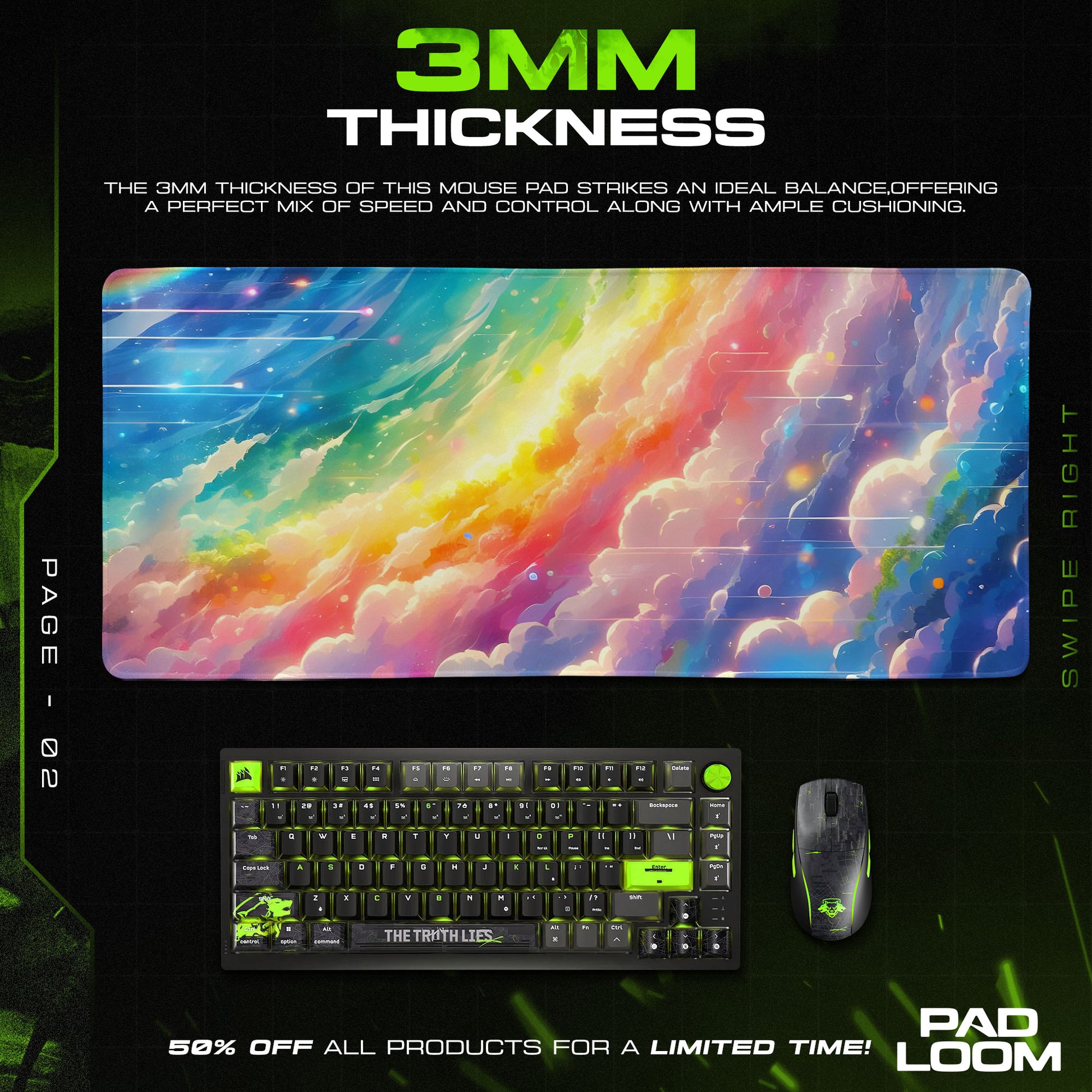 But beyond its dreamy design, the desk mat is built with functionality in mind. The smooth fabric surface delivers effortless glide and precise mouse tracking, whether you’re battling in games, sketching fan art, or simply browsing with comfort. Its extended size creates the perfect base for your gaming setup, giving your keyboard and mouse plenty of room to rest together. At 3mm thick, it balances comfort with responsiveness, cushioning your wrists while maintaining the control you need for speed and accuracy.