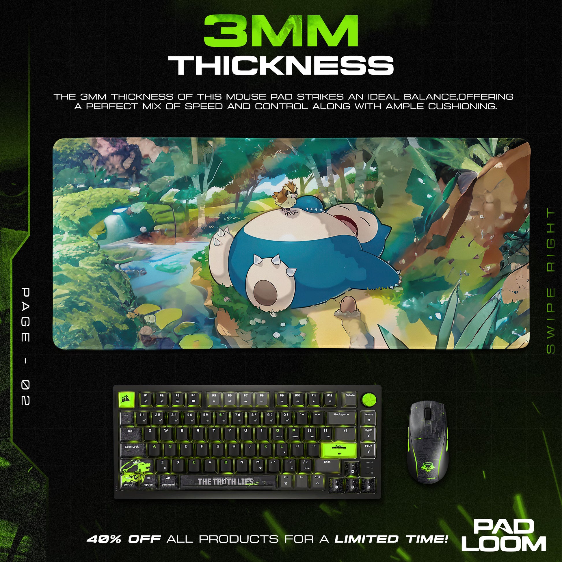 Perfect for lovers of cozy atmospheres, nature scenes, or just the soothing energy of Snorlax in its element, this mouse pad offers more than performance—it offers presence. A place to return to each time you sit down, where productivity doesn’t have to feel rushed, and even a desktop can become a little sanctuary.