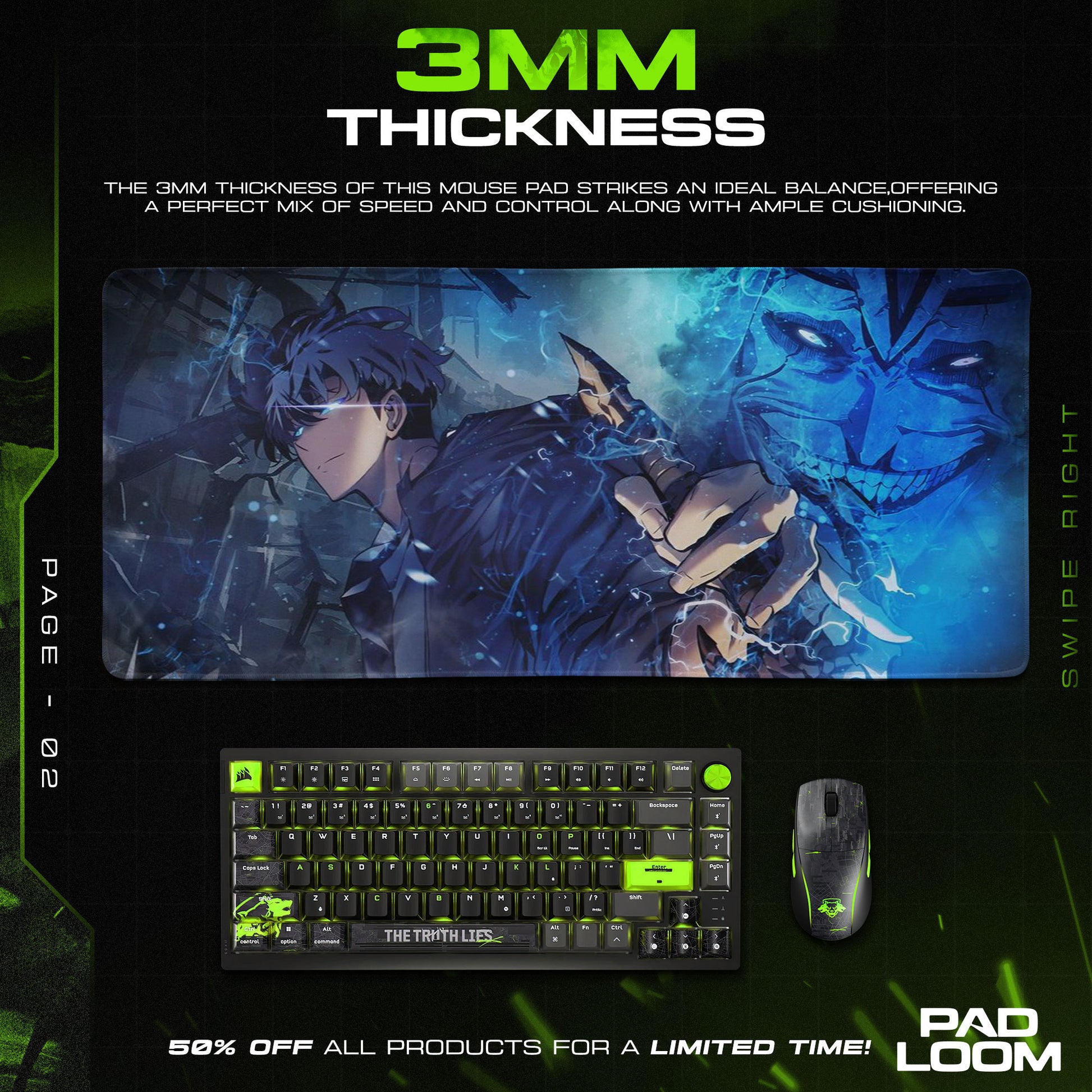 Part of the Padloom mouse pad collection, the Solo Leveling design embodies quiet power and relentless drive — a symbol of growth forged through shadow and determination.