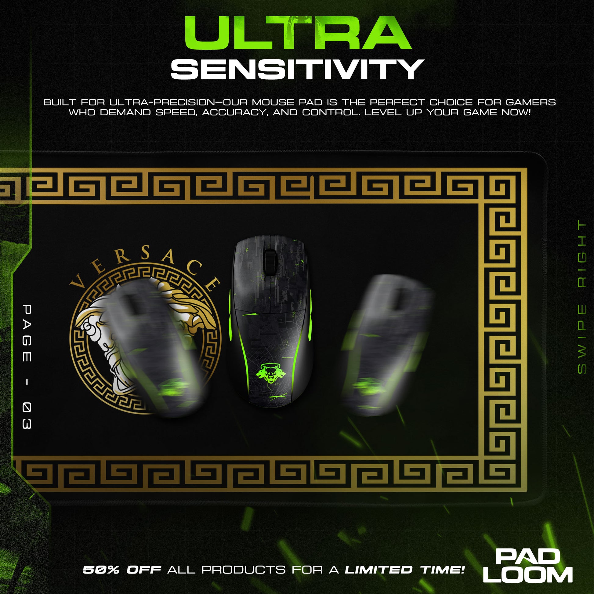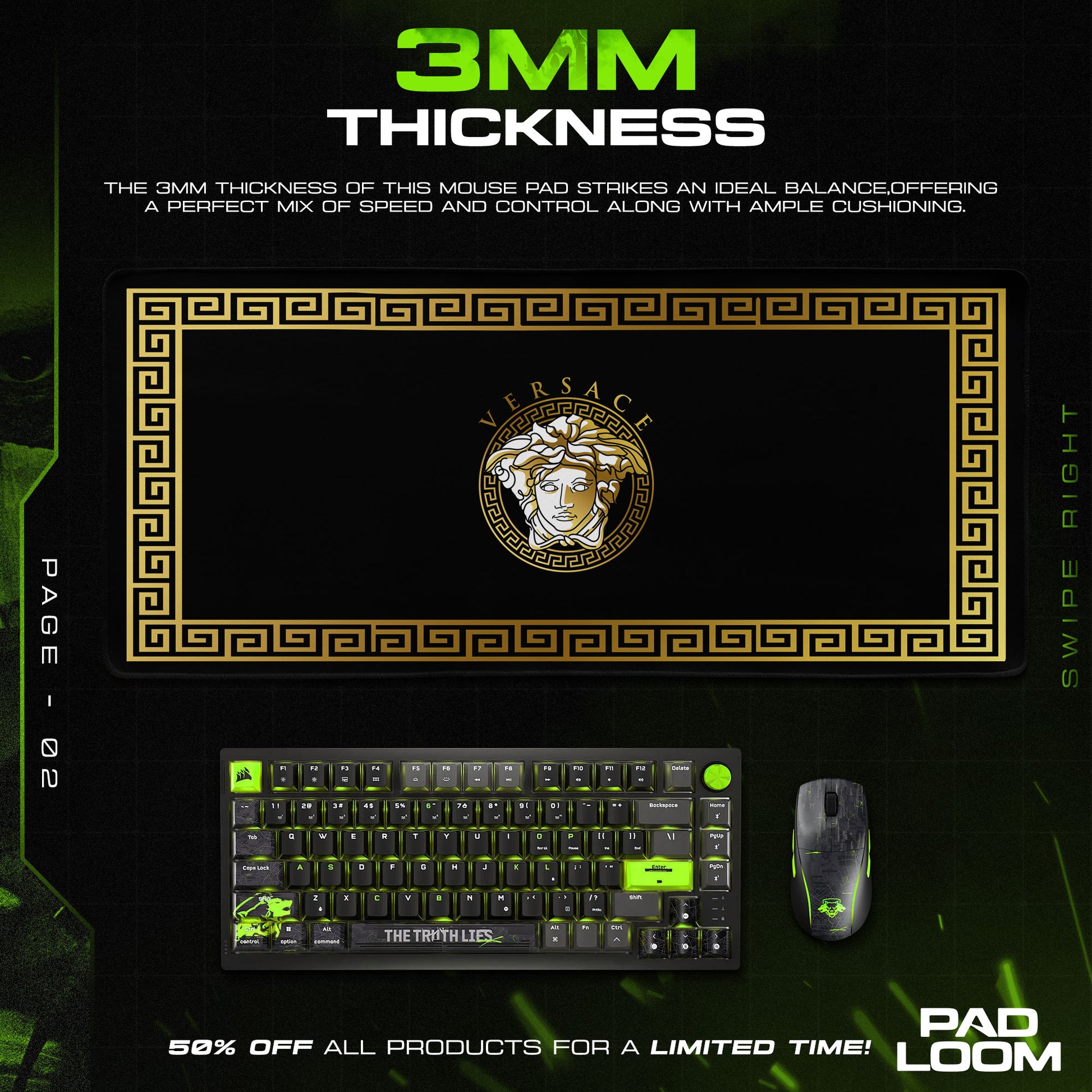 Elegance meets precision in the Versace Black Medusa Mouse Pad — a masterpiece that captures the essence of luxury design. The deep matte-black base is framed by a gold Greco border, encircling the timeless Medusa emblem at its heart. Every detail evokes confidence and sophistication, reminiscent of high-fashion minimalism and modern workspace aesthetics. Its striking contrast of black and gold commands attention while maintaining a sleek, balanced energy that complements any setup.